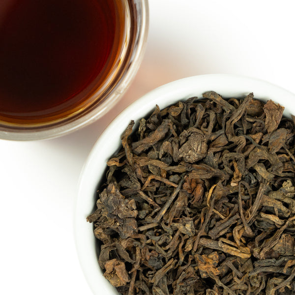 Like the fragrant air after rainfall, this aged Pu-erh tea has an earthy, complex flavor profile. Unlike traditional teas with 2 young leaves and a bud, Pu-erh uses 3-4 leaves and bud, yielding older, broader leaves suitable for the fermentation process. The longer Pu-erh is fermented, the smoother the flavor will be. Our Pu-erh 3 Year Aged is a fine specimen with a rich, velvety taste. When you brew a cup, remember to first 'rinse' the tea leaves by steeping in boiling water for 30 seconds and dumping the water. This unlocks the full flavor profile, and you can then brew many infusions from one serving of tea leaves.