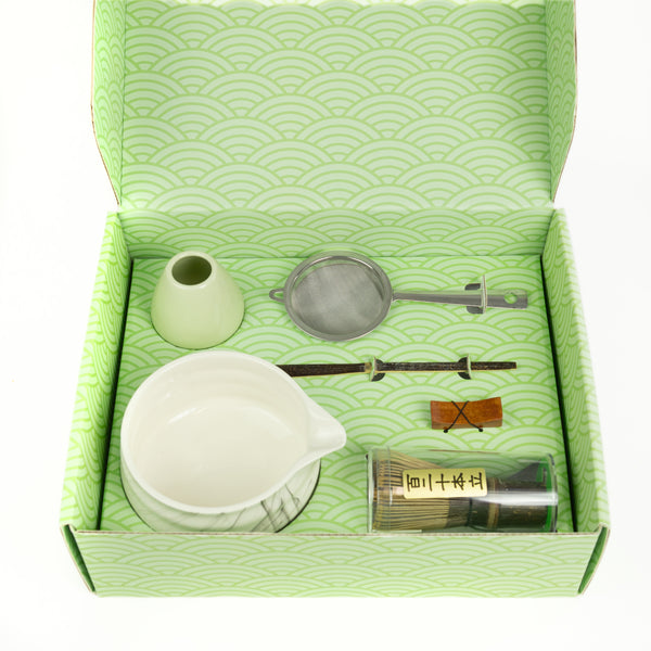 Get ready to host your very own matcha ceremony with this Ceremonial Matcha Set! It comes with everything you need: a smooth matcha bowl, a perfect whisk for frothy magic, a strainer to keep it silky, a spoon to scoop the green goodness, and a whisk stand to show off your tea skills. Whether you're a matcha newbie or a pro, this set turns every tea moment into a fun, mindful ritual. Cheers to your new favorite green tradition!