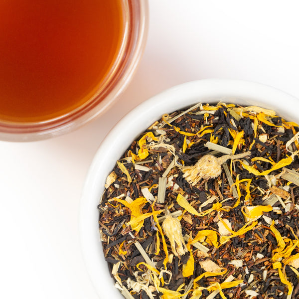 Our Back Porch Blend is a perfect summer thirst quencher. A combination of black tea and Rooibos, it isn't too high on the caffeine scale but makes a perfect summer sidekick. With a dash of coconut and lemon peel, it's deliciously refreshing. Get it while it lasts - it's only around during summer!