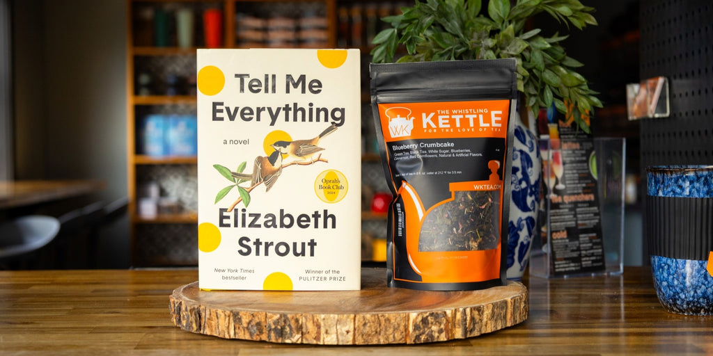 For the month of March, we're reading Tell Me Everything by Elizabeth Strout and pairing it with Blueberry Crumbcake tea.